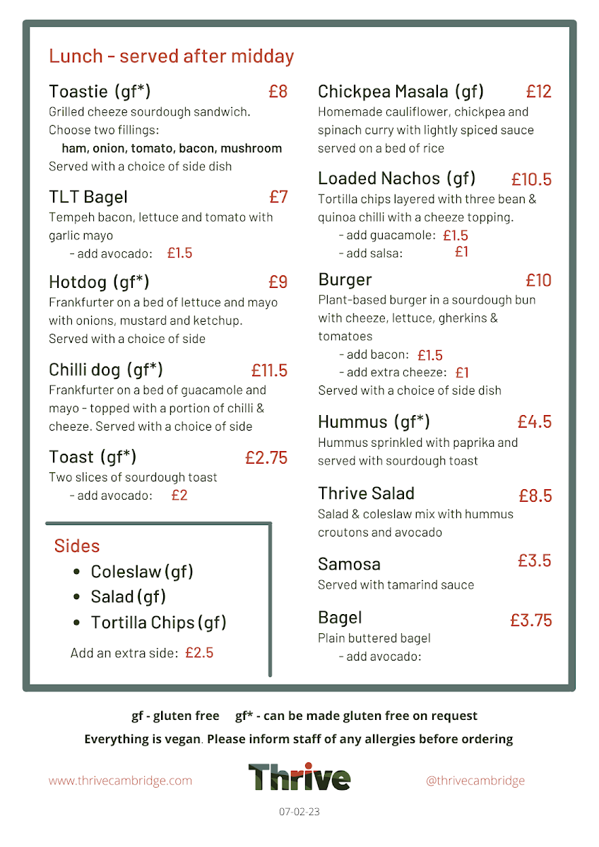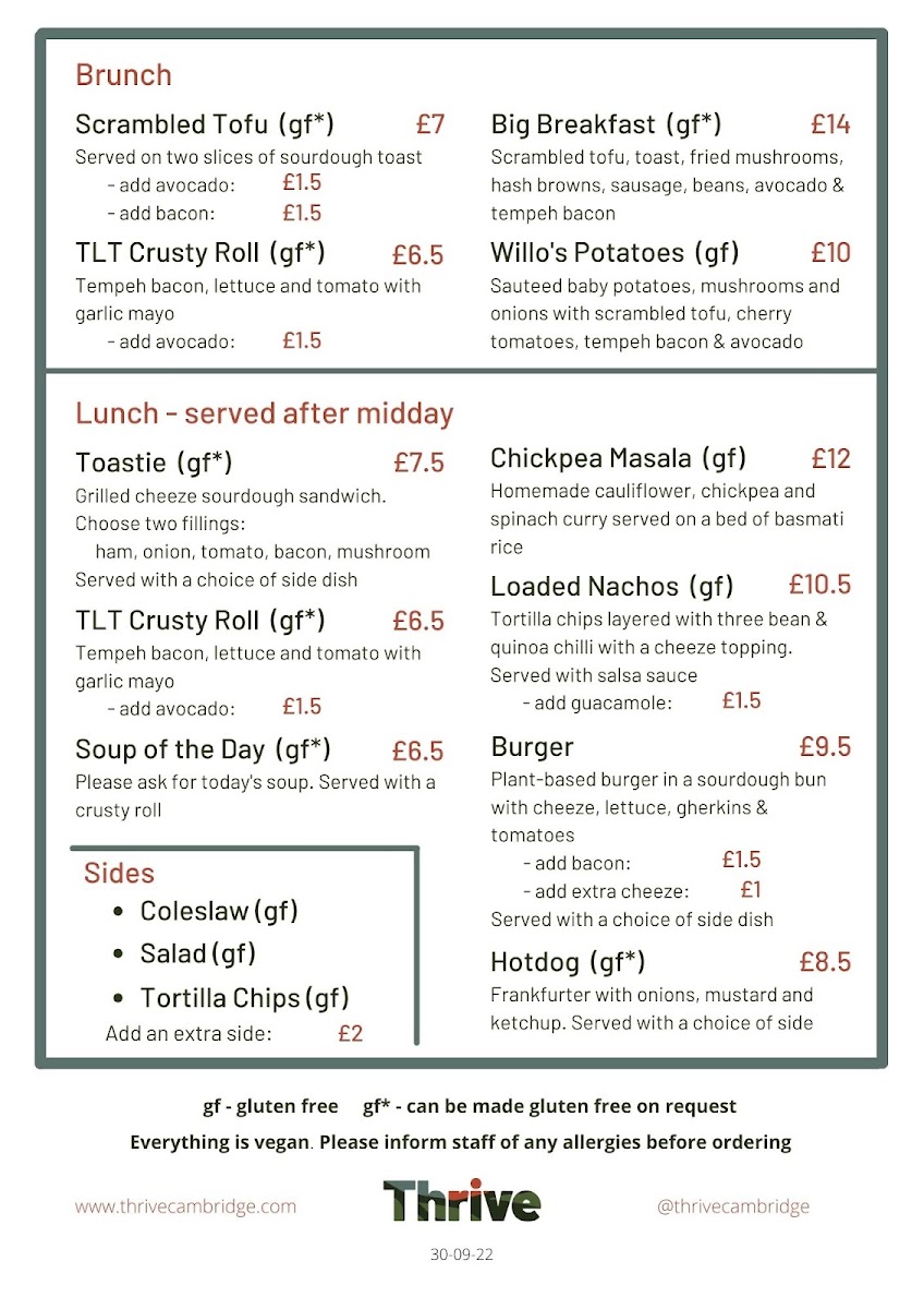 Introducing Thrive, an enchanting café located at 5-7 Norfolk St, Cambridge, where culinary creativity meets vegan goodness. This charming eatery has garnered rave reviews for its delectable offerings and inviting atmosphere. Guests appreciate the thoughtful service, with one patron praising the efficient communication when an item was unavailable, ensuring a delightful experience regardless of the circumstances.